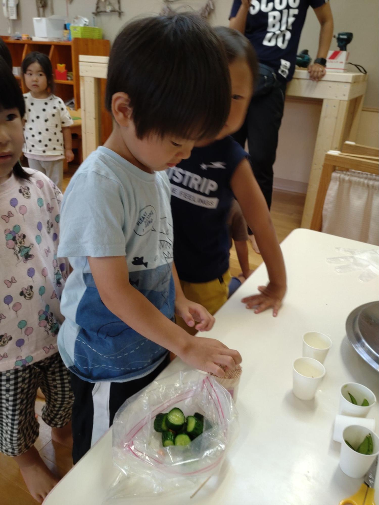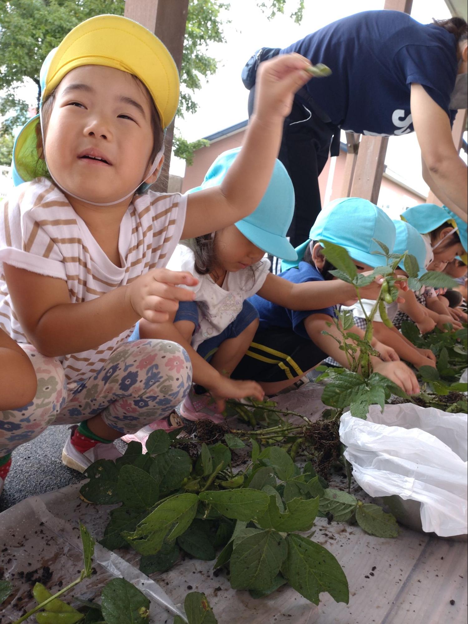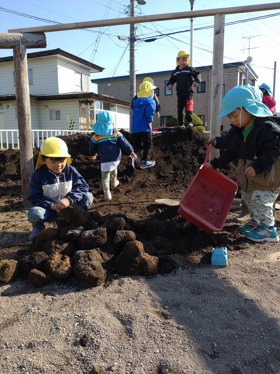 また、厚真町内の農家さんの田んぼを借りて田植えをしたり、自園の畑で野菜の苗を植え、自分たちが育てた物を食べる喜びを実感することを大切にします。