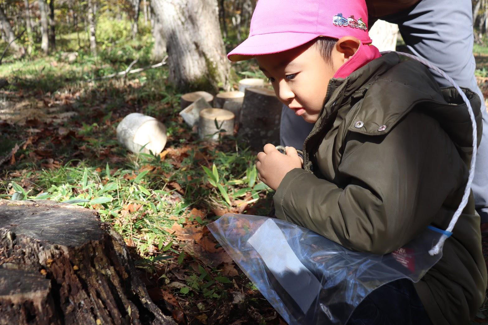 森を訪れると、近所では出会えない大きなカタツムリやカナヘビなど自然の友だちに出会えます。
